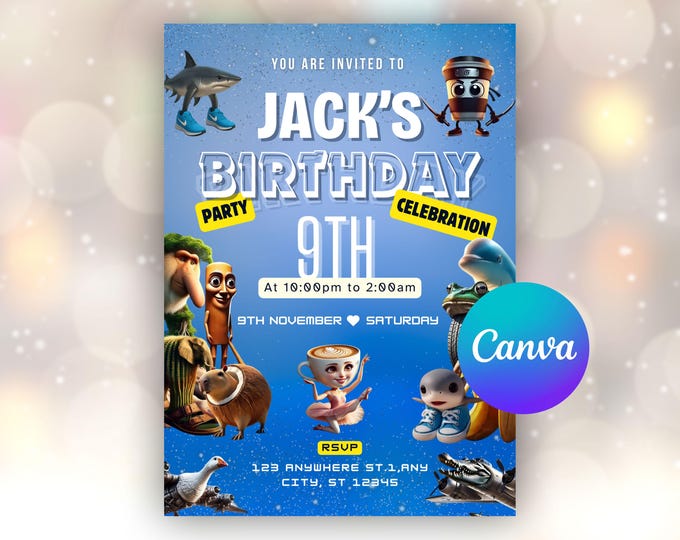 Funny Brainrot Meme Birthday Invitation | Editable Canva Template - Etsy