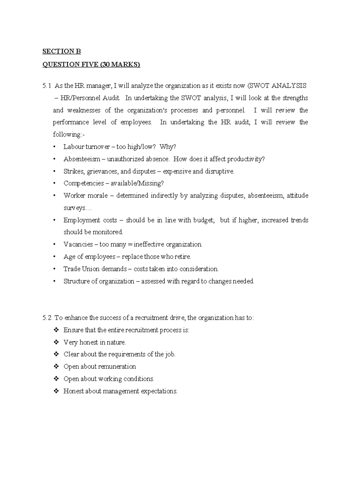 HRMG2HM TEST 2 MEMO: Section B Short Questions Analysis - Studocu