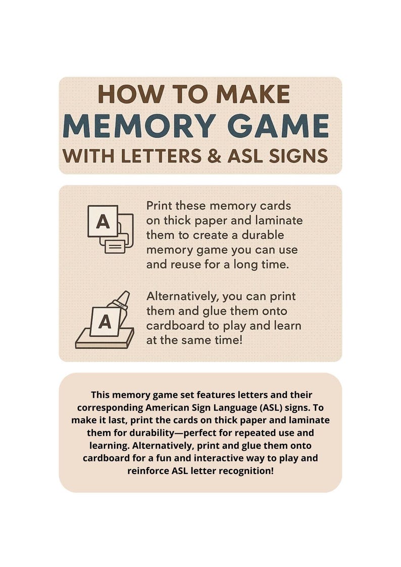 Printable ASL Memory Game – Learn the Alphabet in Sign Language Through ...