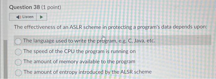 Solved The effectiveness of an ASLR scheme in protecting a | Chegg.com