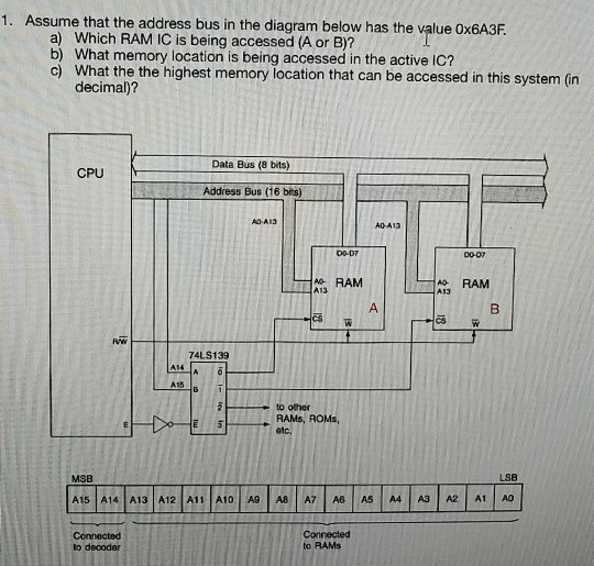 Solved 1. Assume that the address bus in the diagram below | Chegg.com