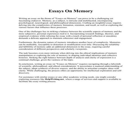 The Implications of Memory, Thinking and Language for the Modern Essay ...