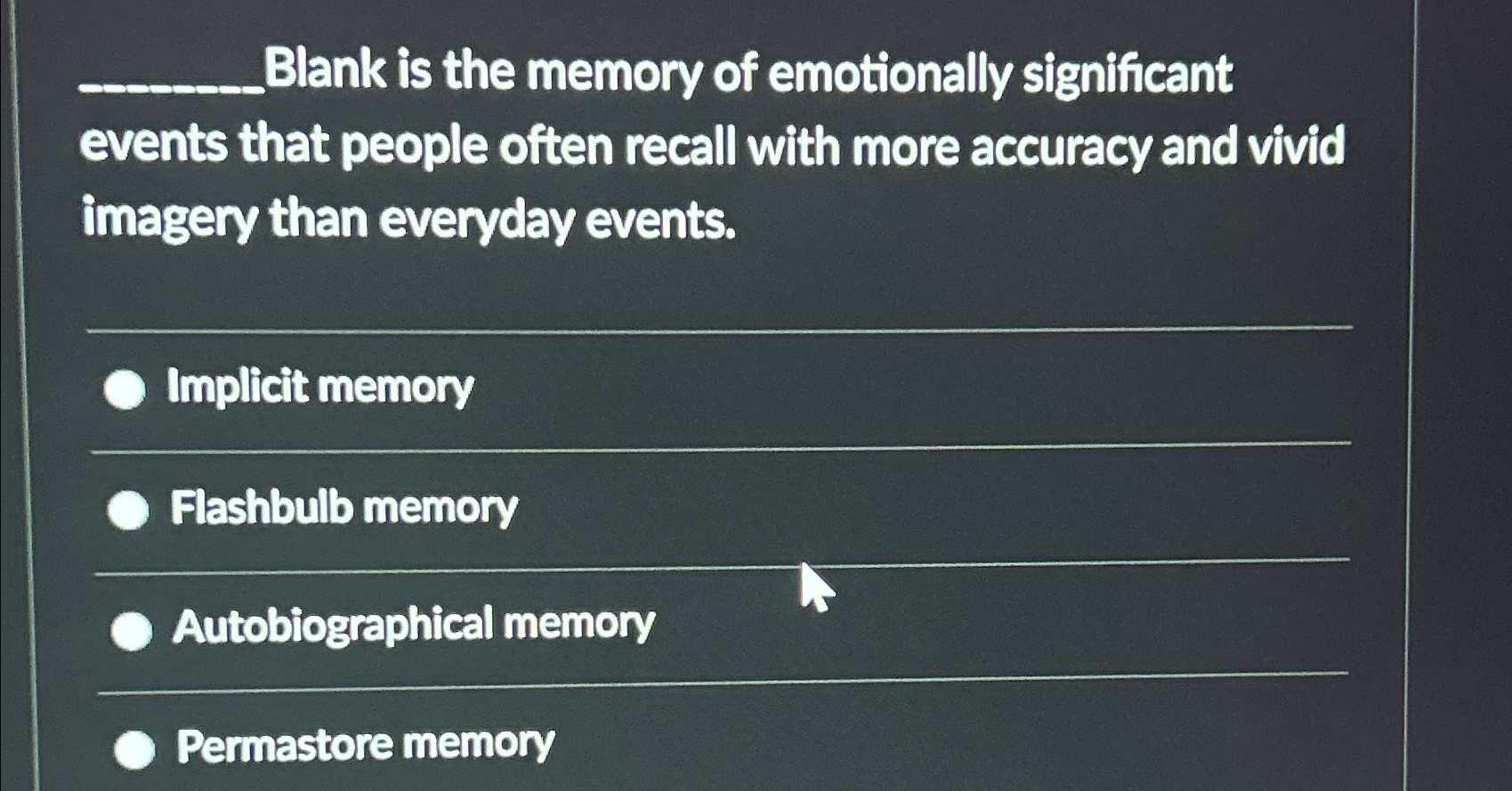 Solved Blank is the memory of emotionally significant events | Chegg.com