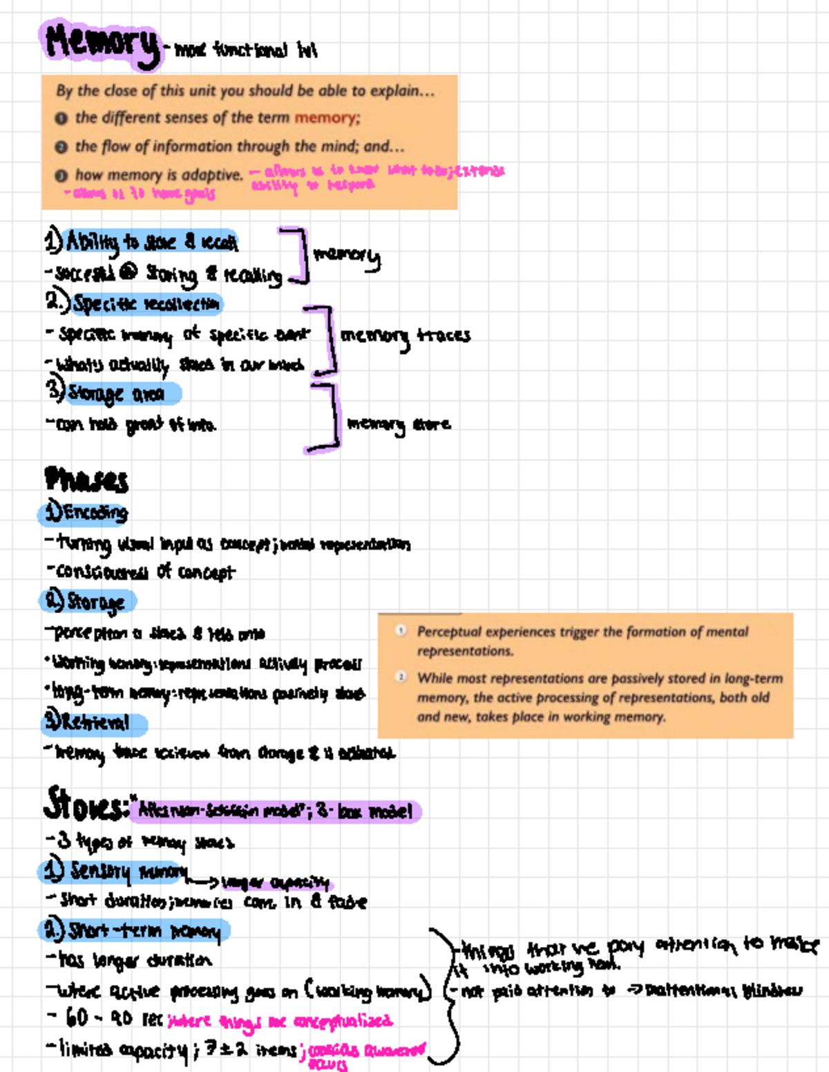 UNIT 7 L09 Memory - Notes based on the study guide for memort - Memory ...