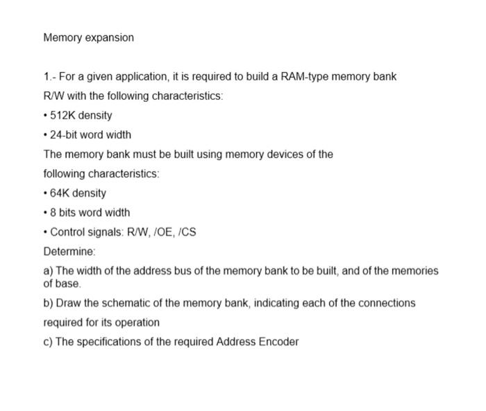 Solved Memory expansion 1.- For a given application, it is | Chegg.com