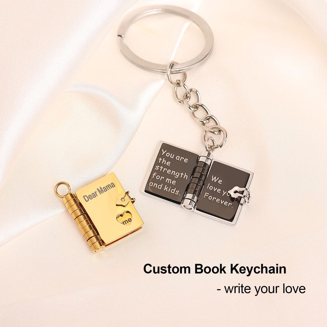 Customized Book Keychain With Name & Messages, Personalized Petite Book ...