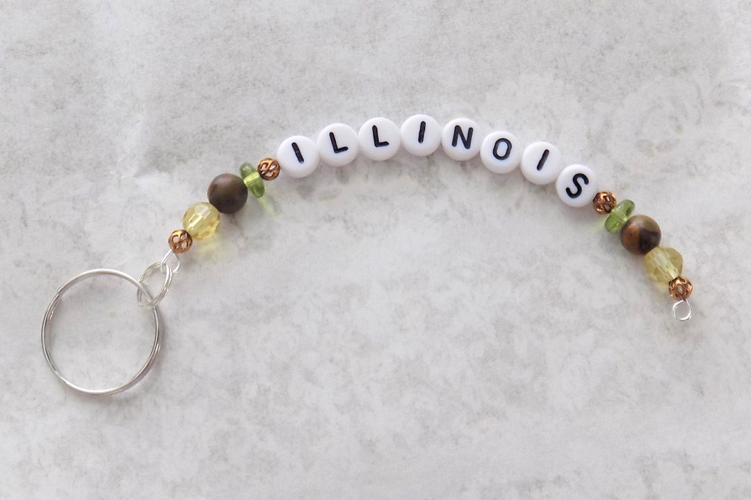 ILLINOIS Memory Wire Key Chain, State Key Chain, Chrysanthemum Stone ...