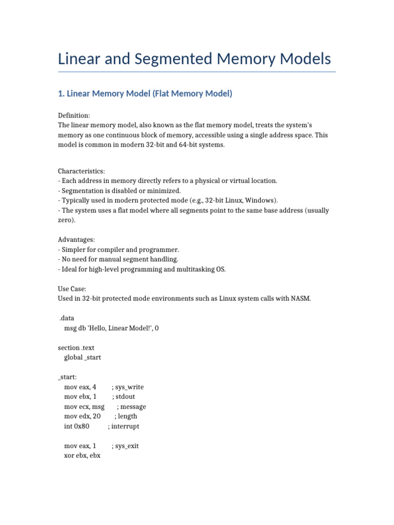 Linear Vs Segmented Memory Models | PDF | X86 Architecture | Office ...