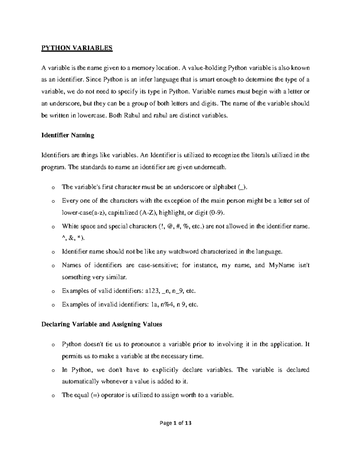 Python Variables and data types.docx - Python Variables Variable is a ...