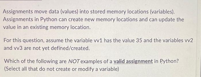 Solved Assignments move data (values) into stored memory | Chegg.com