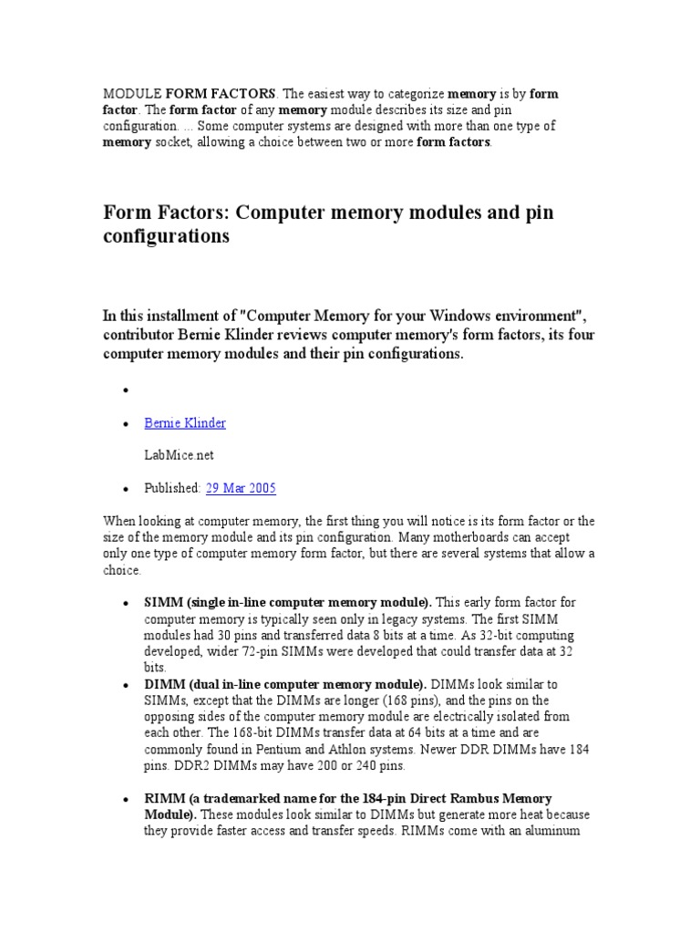 Memory Form Factors: Understanding Computer Module Sizes and Pin ...
