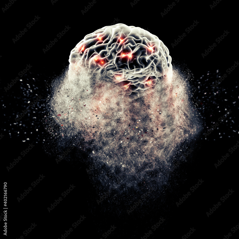 3D rendering of brain showing memory issues in diseases like Parkinsons ...