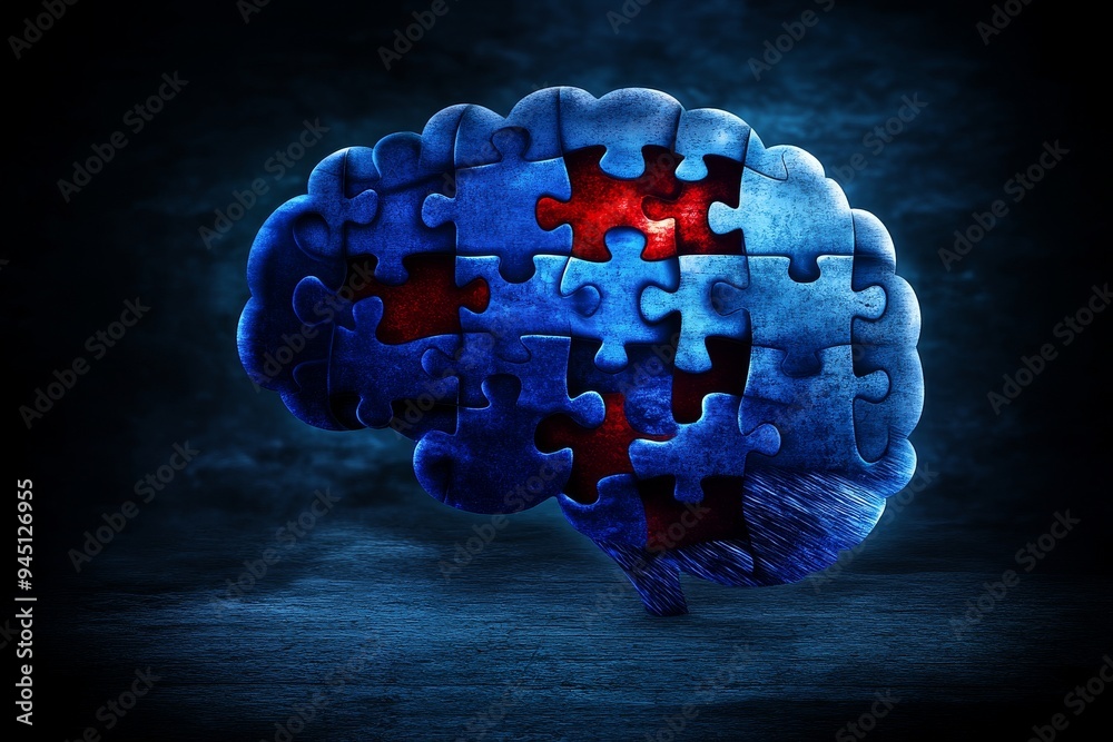 Moody 3D rendering of a brain puzzle with missing pieces and ...