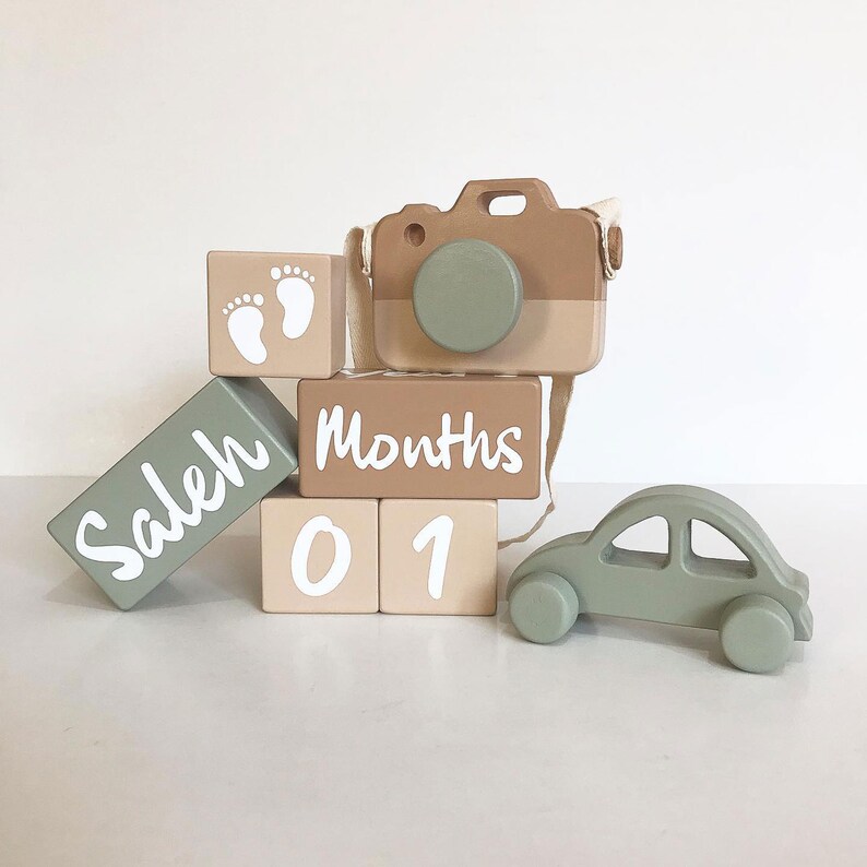 Personalized Wooden Milestone Blocks, Set of 7 Baby Photo Props, Memory ...