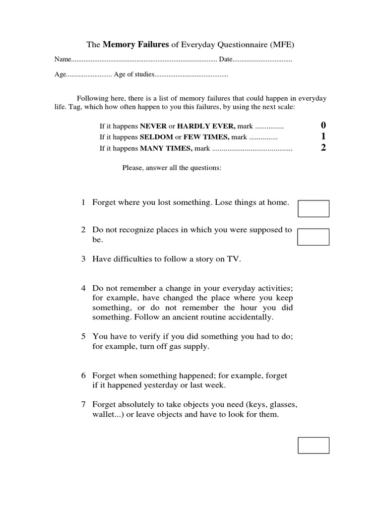 Memory Functioning Questionnaire (MFQ) | PDF | Neuroscience | Mental ...