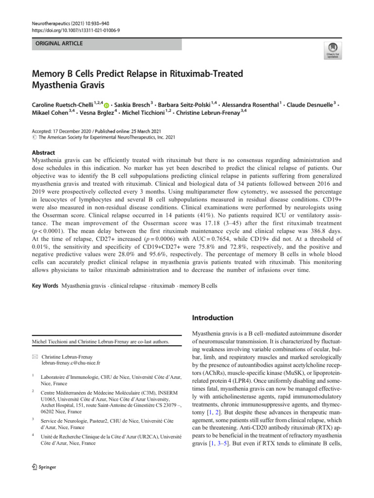 2021-Memory B Cells Predict Relapse in MG | PDF | Clinical Medicine ...