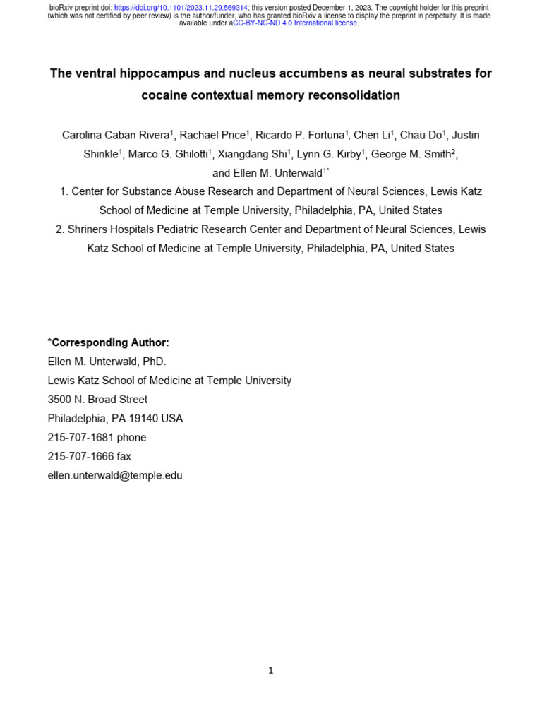 Nihpp-2023 11 29 569314v1 | PDF | Memory | Relapse