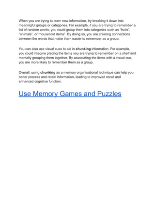 Effective Memory Techniques for Students | PDF | Memory | Mnemonic