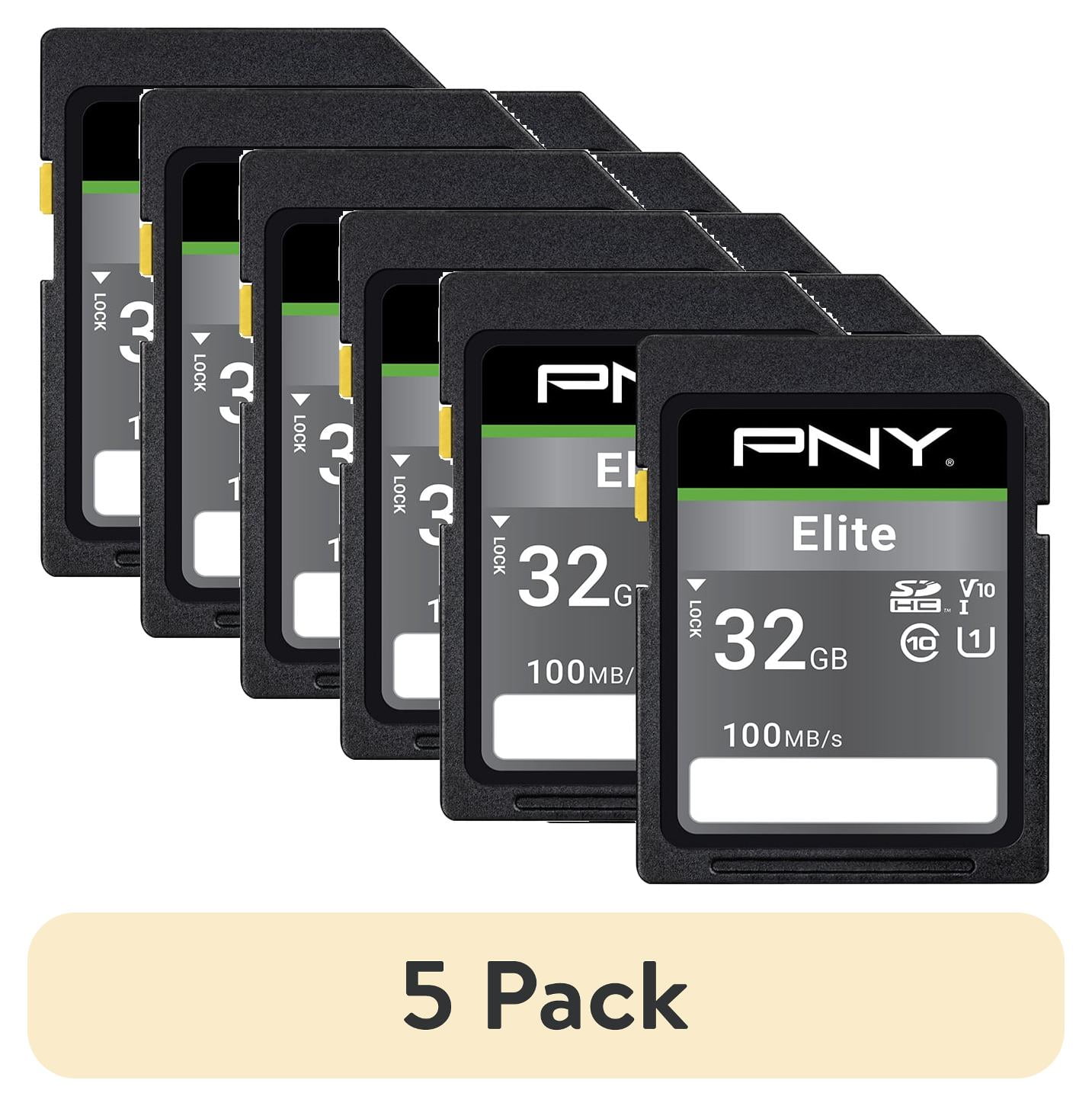 (5 pack) PNY 32GB Elite Class 10 U1 V10 SDHC Memory Card 2-Pack, 100MB ...