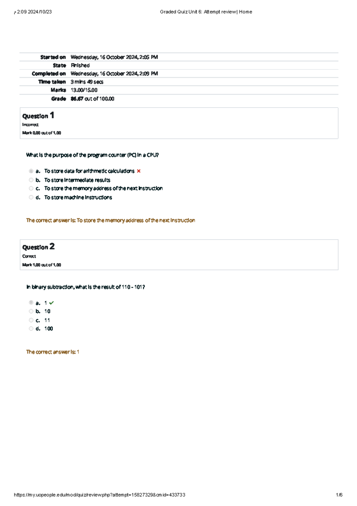 Graded Quiz Unit 6: CPU and Memory Concepts Review - Studocu