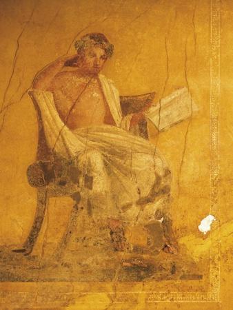 'Fresco on Yellow Background Depicting Greek Poet Menander, from House ...