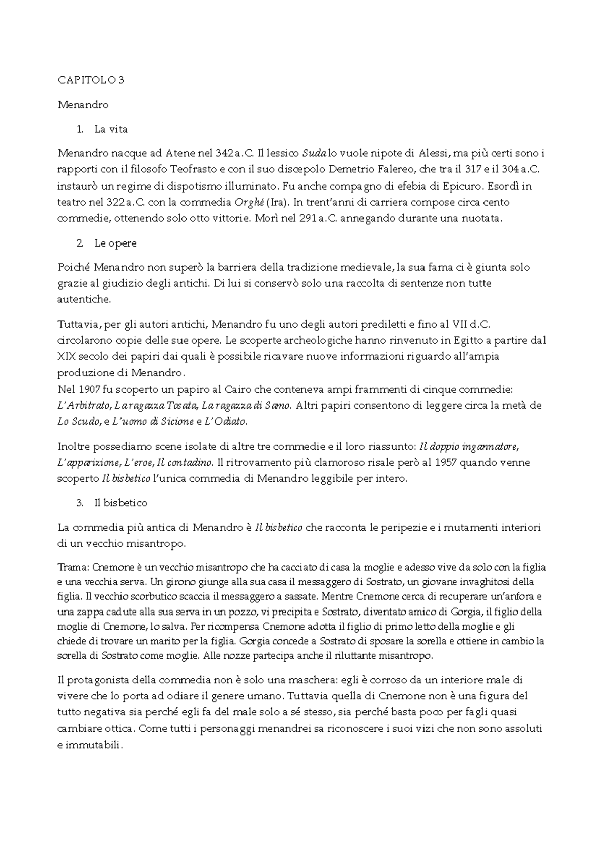Capitolo 3 Menandro - Letteratura greca - CAPITOLO 3 Menandro La vita ...