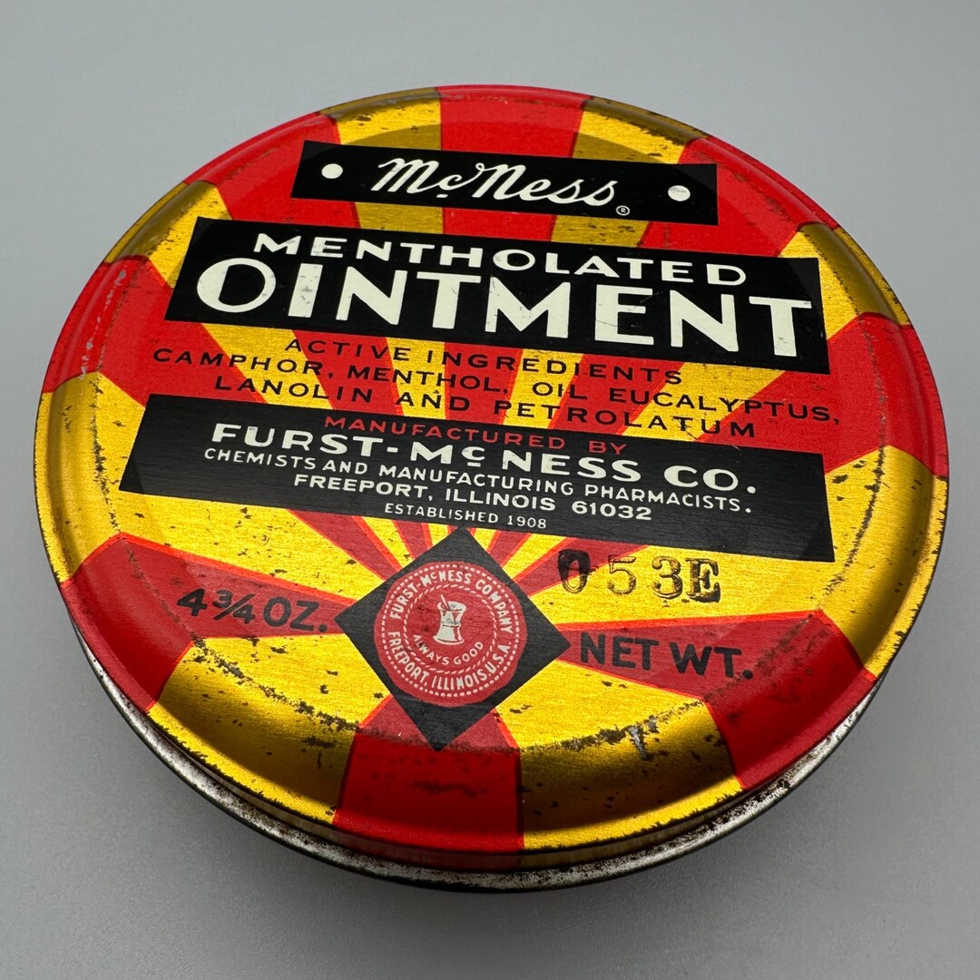 Vintage Mcness Mentholated Ointment Tin 4.34 Oz Red & Yellow Metal ...