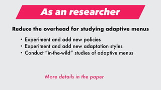 (a) Adaptive highlight menu (b) mixed-initiative menu (c) adaptive ...