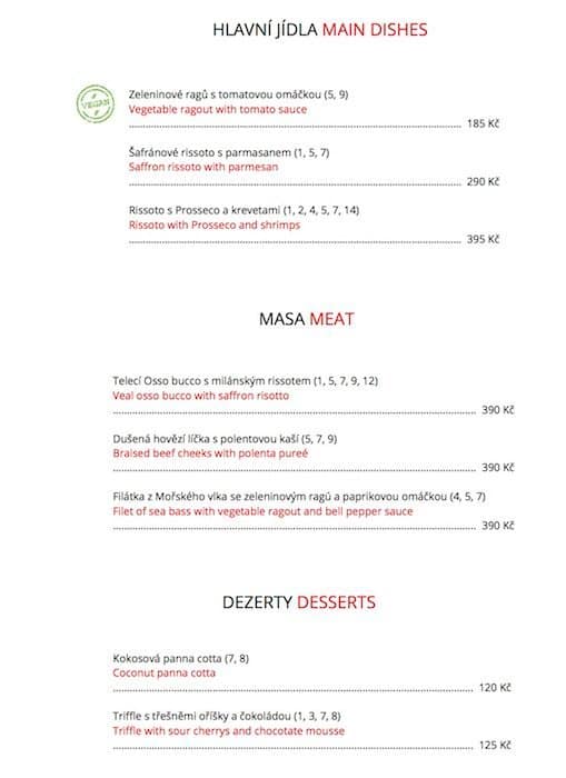 Menu at CD Restaurant - Hotel Diplomat, Prague