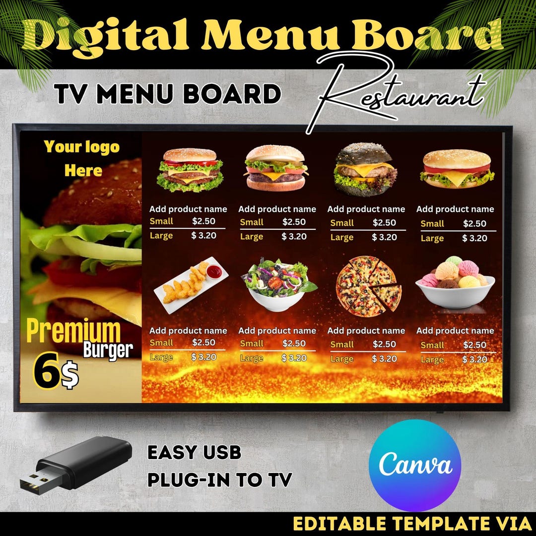 Burger Restaurant TV Menu Board: Editable Canva Template (digital ...