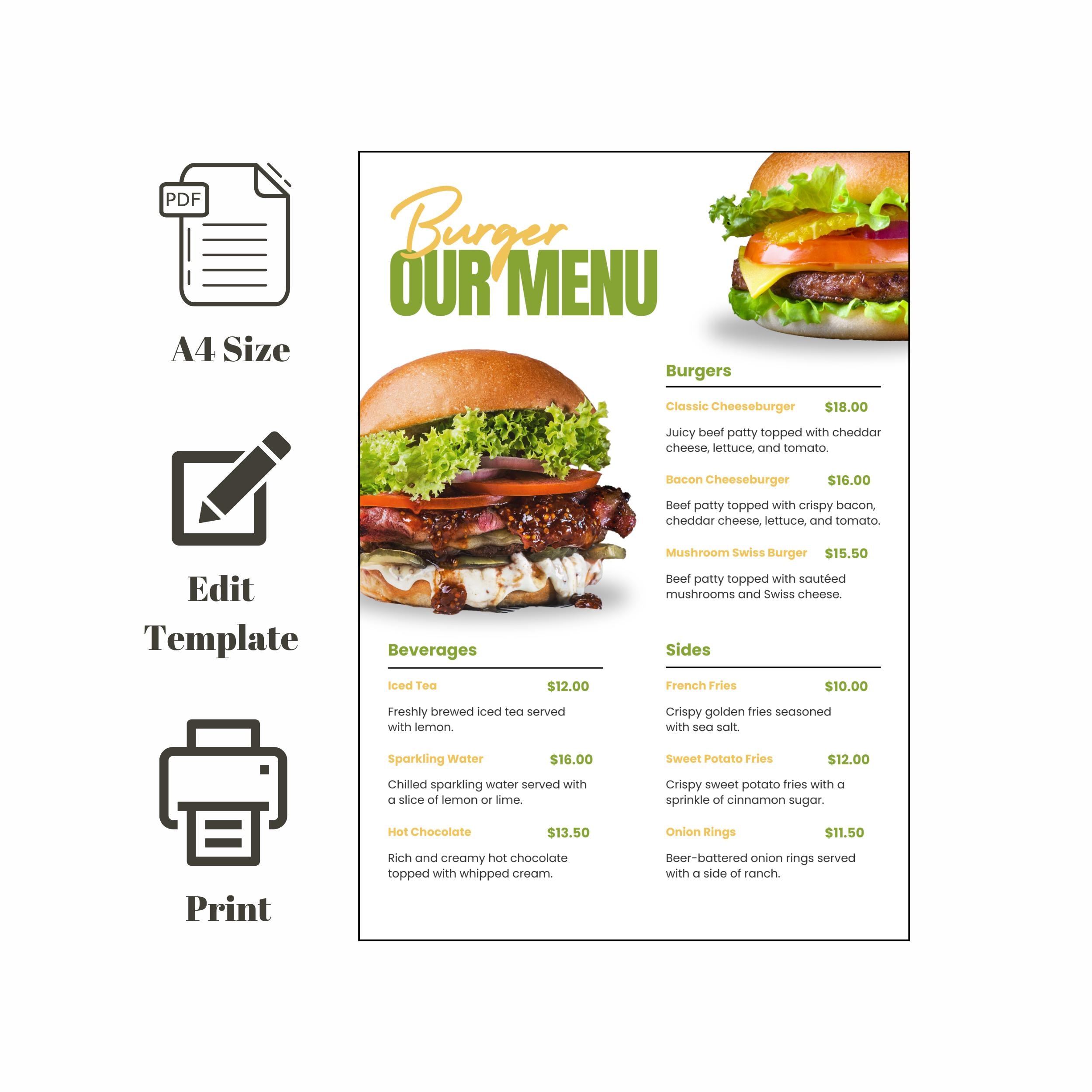 Editable Canva Burger Menu Template, Custom A4 Restaurant Menu, Instant ...