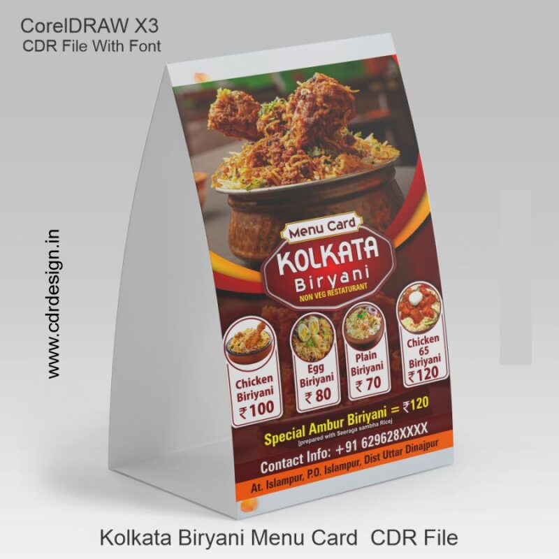 Kolkata Biryani Menu Card CDR File Menu CDR File - cdrdesign.in
