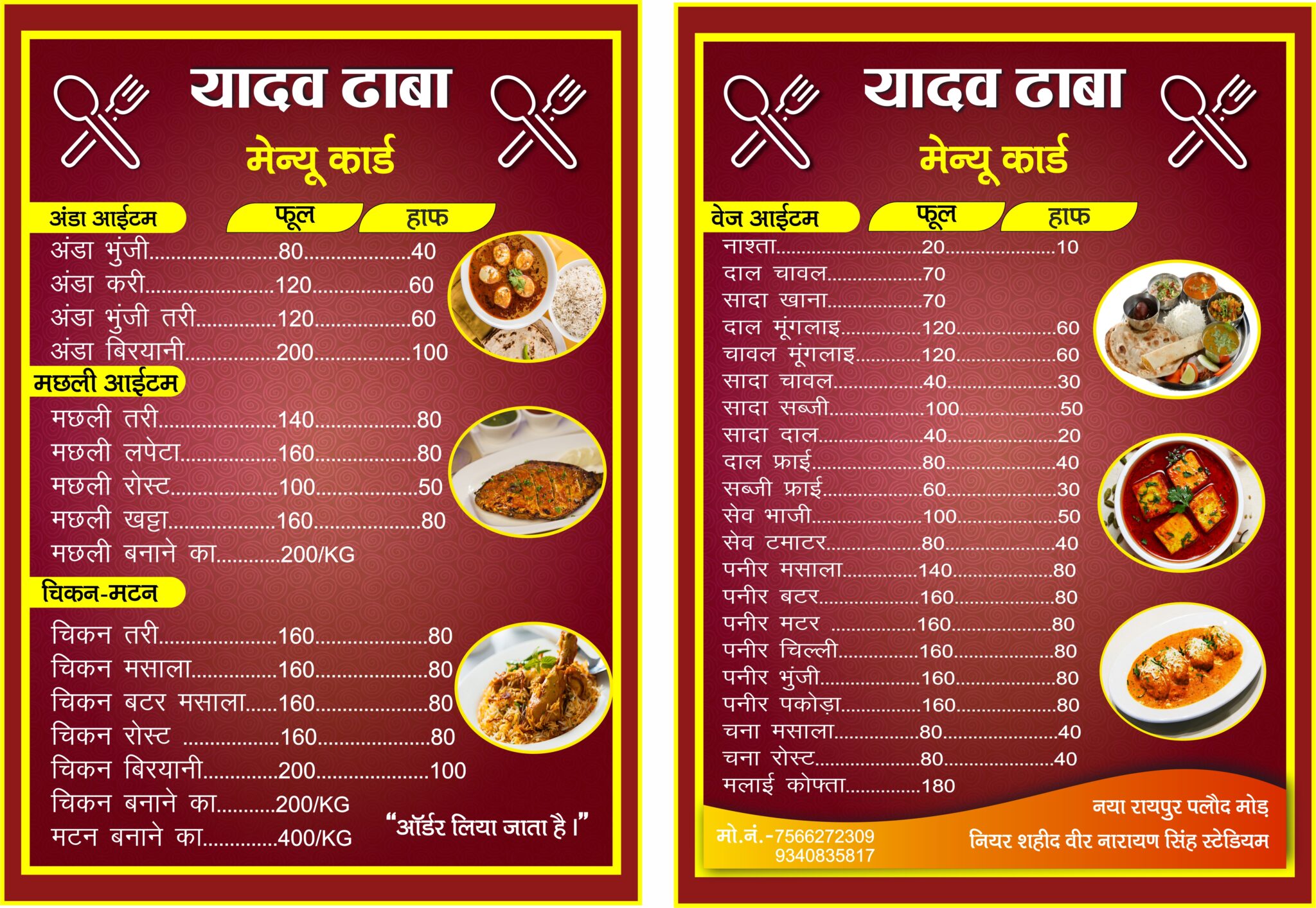 2 Page Dhaba Menu Card Design cdr file - cdrdesign.in