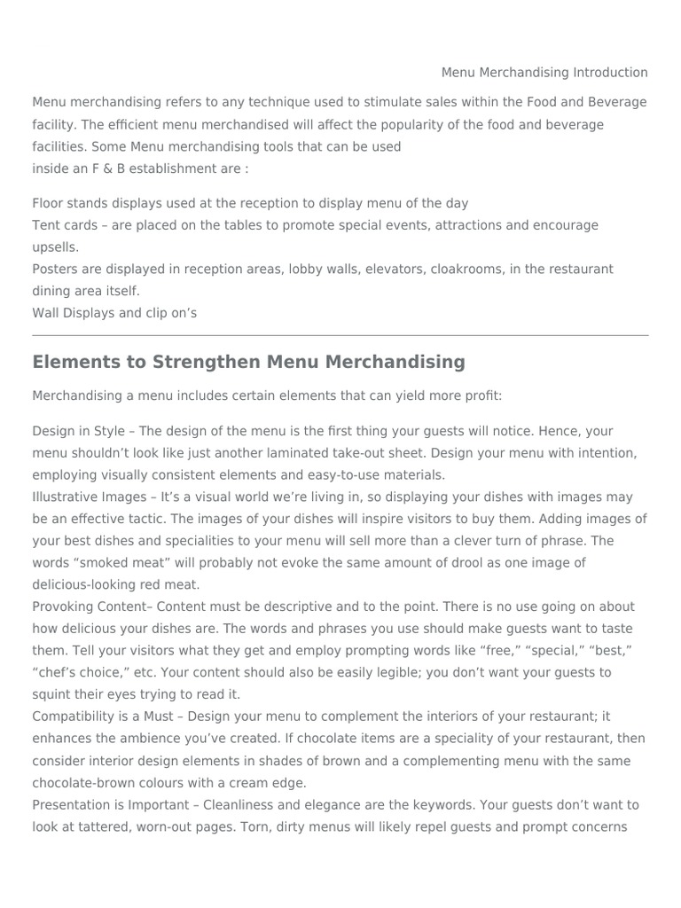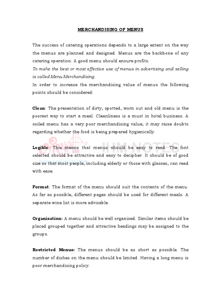 Menu Merchandising Introduction - IHM Notes by hmhub