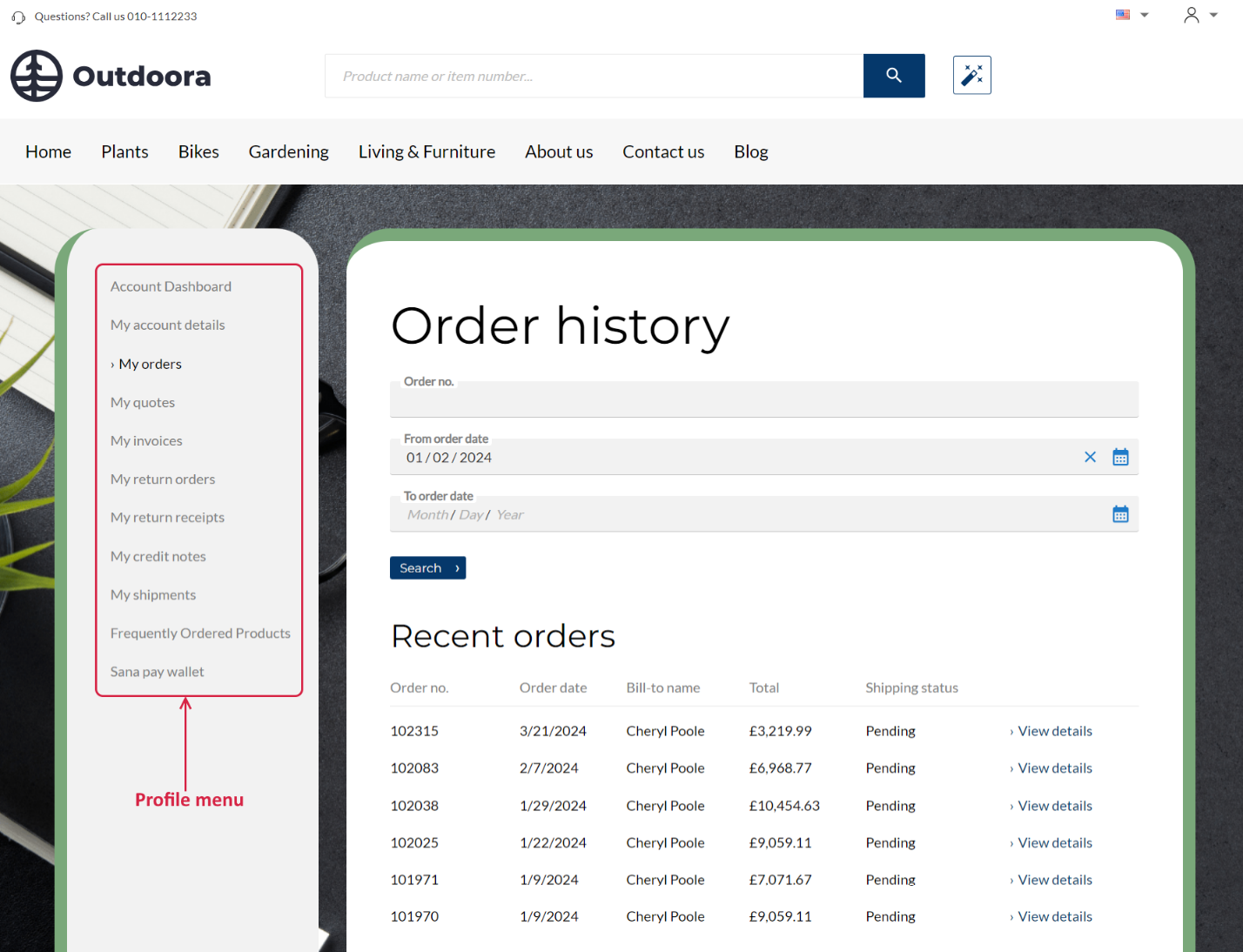 Profile page