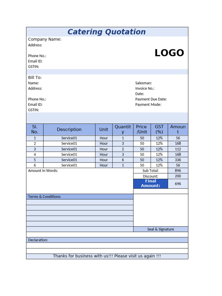 Create Professional Catering Quotations - Free Template & Examples
