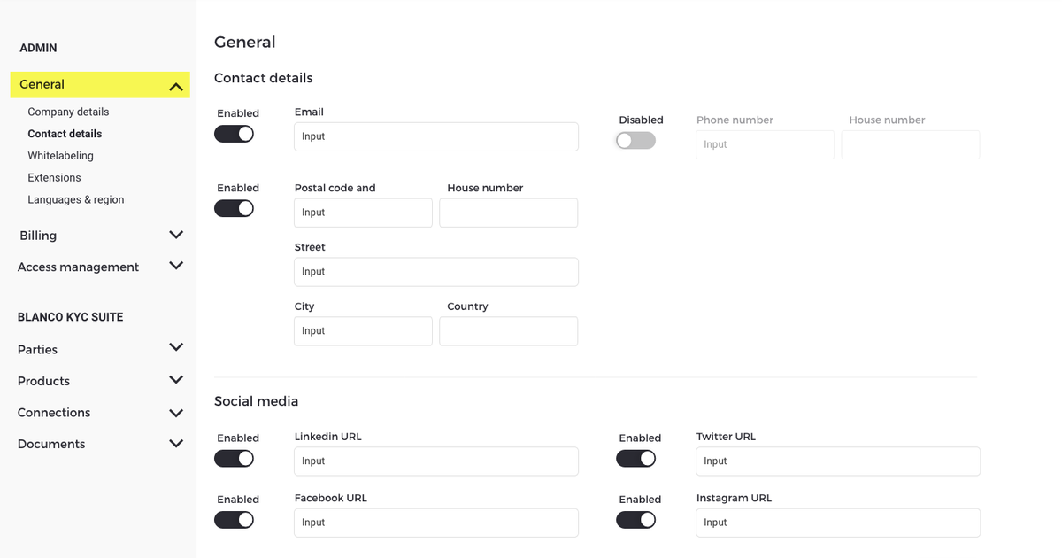 Verbeterde menu structuur settings KYC professional portal • Blanco