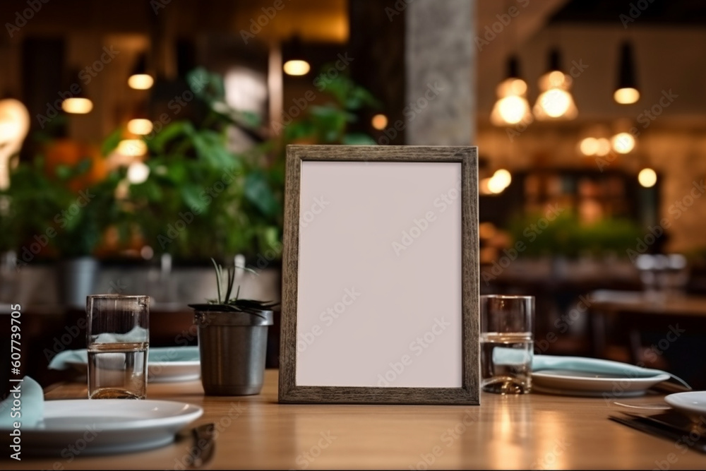 Premium AI Image | Mock up Menu Frame template on table Restaurant cafe ...