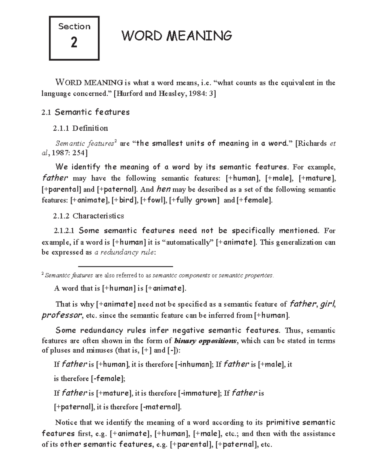 English Semantics (ENG 101) - Section 2: Word Meaning Analysis - Studocu