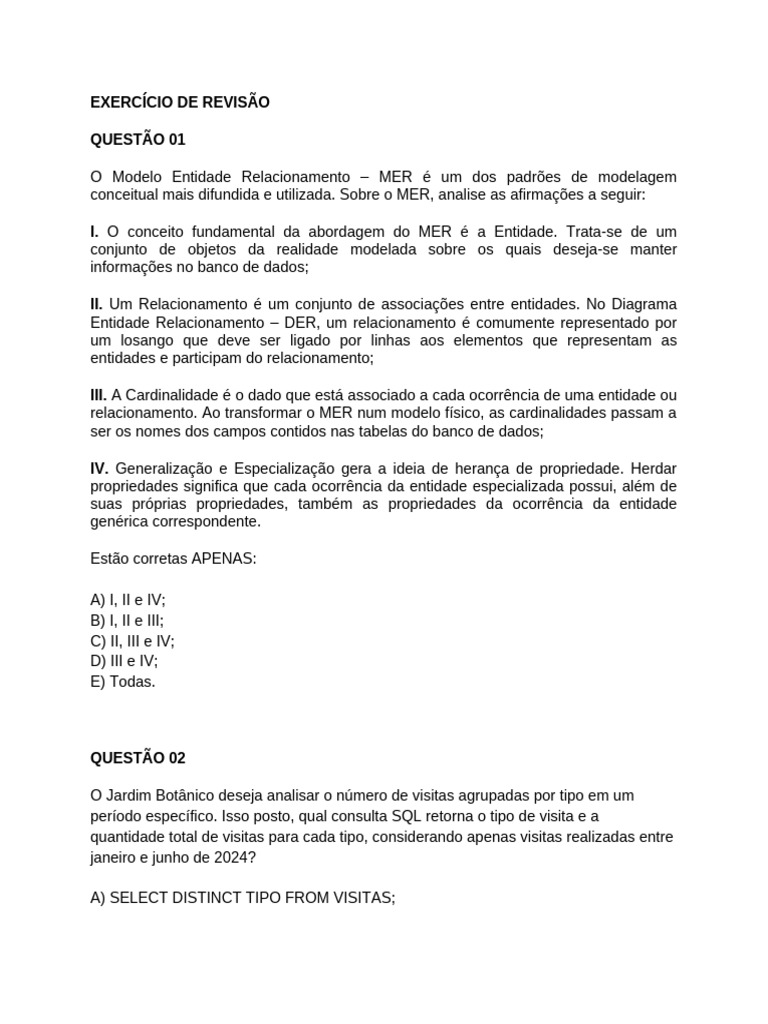 Exercícios de SQL e Modelagem MER | PDF | Modelo relacional | Bancos de ...