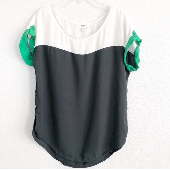 meraki | Tops | Meraki Color Block White Gray Green Top Small | Poshmark