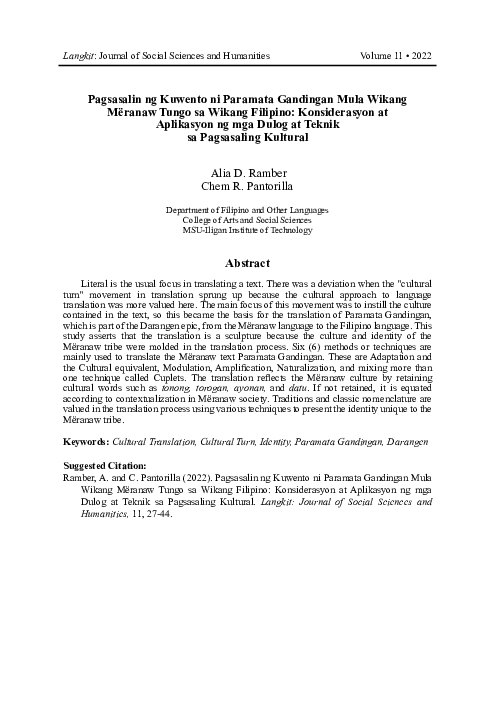 (PDF) Pagsasalin ng Kuwento ni Paramata Gandingan Mula Wikang Mëranaw ...