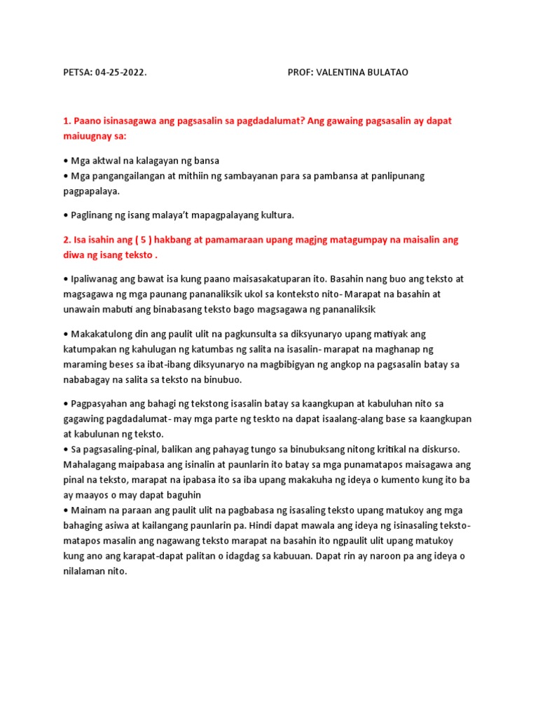 SOLUTION: Metodo sa pagsasalin - Studypool