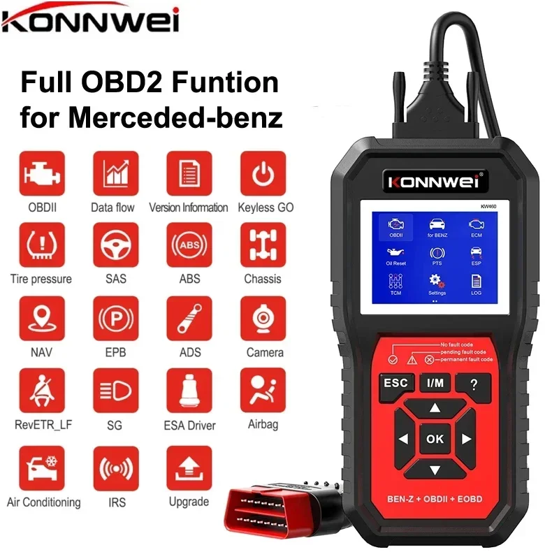 Professional OBD2 Scanner KW460 Code Reader for Mercedes-Benz ABS ...