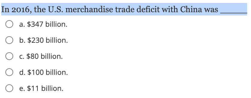 Solved In 2016, the U.S. merchandise trade deficit with | Chegg.com