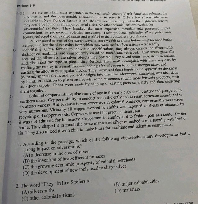 estions 1-9 e (1) As the merchant class | StudyX