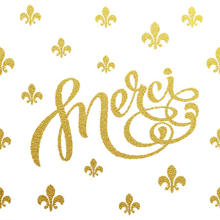 Merci card with design of gold letters on white background: Royalty ...