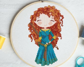 Merida Princess Cross Stitch Pattern, Modern Embroidery (PDF Pattern ...