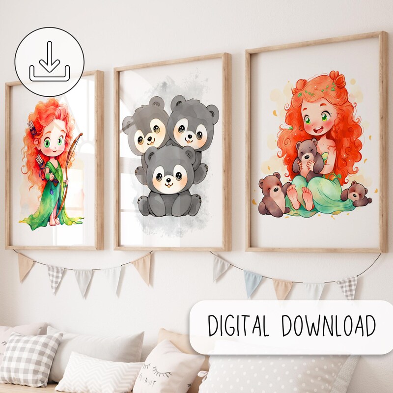 Princess Merida poster disney princess nursery wall art girl room decor ...