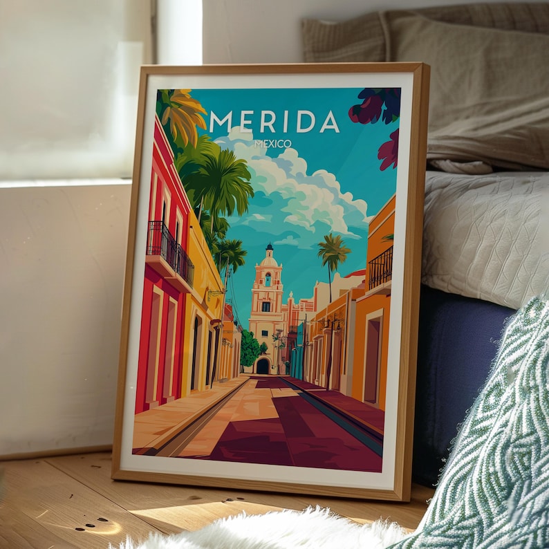 Merida Travel Poster Yucatan Mexico Vintage Art Print (XR4588) - Etsy ...